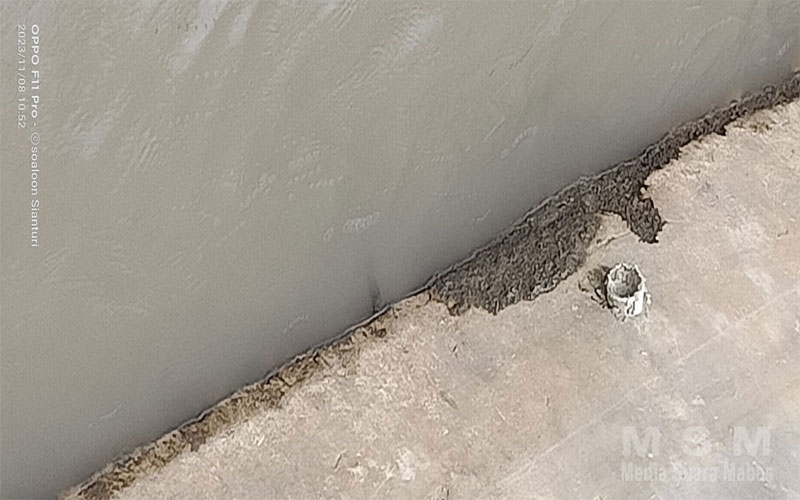 Di konfirmasi oleh awak media suara mabes salah seorang warga sekitar mengatakan pekerjaan tersebut baru selesai di kerjakan sekitar satu bulan lalu tetapi bagian dingding pasangan tembok saluran sudah tampak terkelupas di duga campuran semen dengan pasir tidak sesuai campuran seperti yang telah di tentukan.