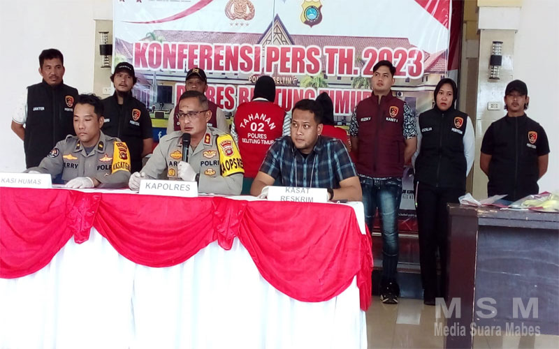 MahesaMediaCenter, Babel – Kapolres Belitung Timur Akbp.Arif Kurniatan ,S.I.K.,M.M.,Pimpin langsung Konferensi Pers Tentang Tindak Pidana pencurian mesin atm Yang Telah Terjadi di Wilayah Hukum Polres Belitung Timur.Kasus Pembobolan dab perusakan Mesin ATM di Kecamatan Kelapa Kampit Kabupaten Belitung Timur.
