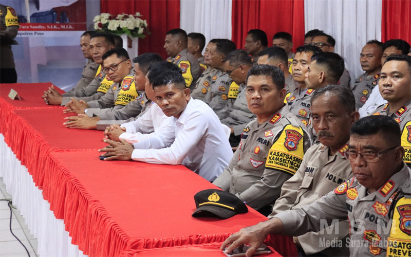 Dalam kunjungan kerja di Polres Poso, Kapolda Sulteng didampingi Ketua Daerah Bhayangkari Sulteng Fera Agus Nugroho, Dirlantas, Dirreskrimum, Dirresnarkoba, Dirsamapta dan Kabidhumas Polda Sulteng.