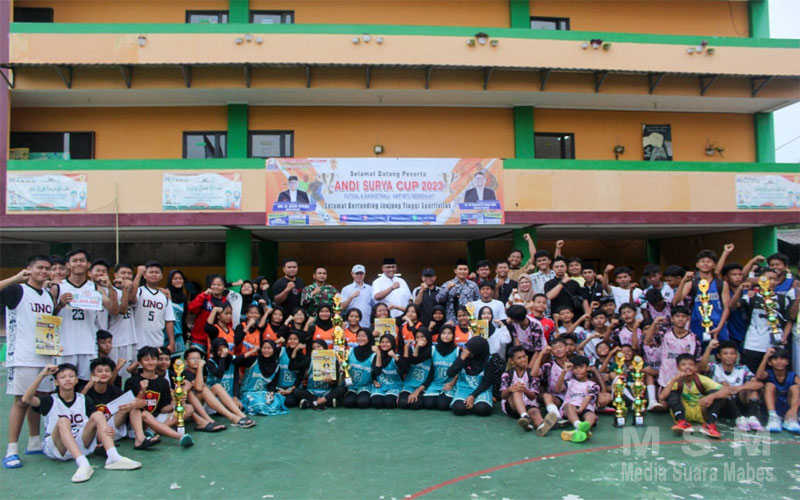 MahesaMediaCenter, Bandarlampung – Dr. H. Andi Surya menutup secara resmi dan menyerahkan hadiah pemenang turnamen futsal dan basketball Andi Surya Cup 2023 di lapangan Global Surya Islamic School, Sabtu (11/11).