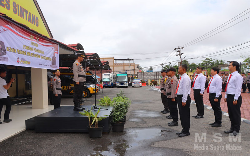 Ia menambahkan bahwa dalam melaksanakan tugas Kepolisian, kita senantiasa dituntut mampu menjawab tantangan tugas untuk mewujudkan wilayah Kabupaten Sintang tetap aman dan kondusif.