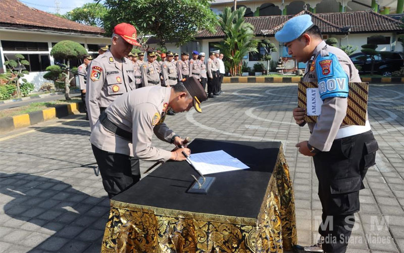 “Setelah sambutan, dilakukan penandatanganan serah terima siswa Latja Diktukba Gelombang II oleh Kapolres Jembrana”.
