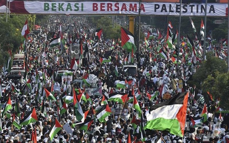 Pj. Wali Kota Bekasi Gani Muhamad hadir langsung sebagai wujud dukungan terhadap upaya pembebasan rakyat Palestina dengan berdasar pada kemerdekaan ialah hak segala bangsa.