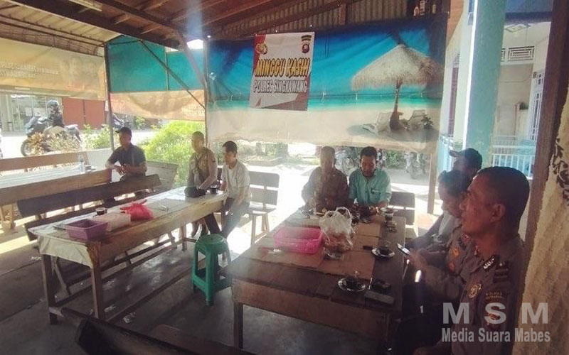 MahesaMediaCenter, Singkawang Kalbar – Polres Singkawang, Kapolsek Singkawang Timur AKP Samsudin Pimpinan Kegiatan Minggu Kasih bersama Masyarakat Kelurahan Pajintan, Kegiatan dilaksanakan di Warung Kopi di Jl Raya Skw-Bky Kel. Pajintan Kec. Singkawang Timur Kota Singkawang, Minggu (12/11/2023).
