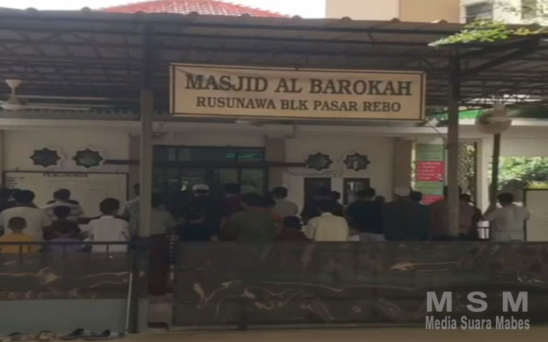 MahesaMediaCenter, Jakarta – Masjid Al-Barokah Pasar Rebo yang berada di tengah- tengah antara tower A dan tower B, selalu di ramaikan lbu- lbu yang sedang Membagikan bingkisan berupa snack nasi/nasi box kepada Jama’ah yang selesai lbadah Sholat Jumat, (17/11/2023).