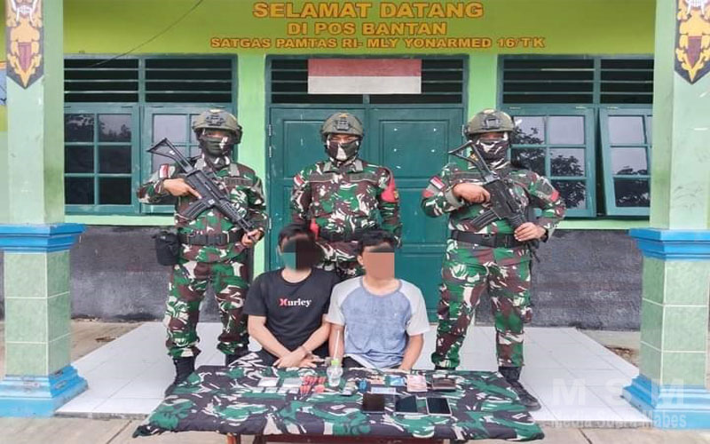 Selanjutnya dari hasil tersebut, sekitar pukul 10.45 WIB berhasil diamankan dua orang WNI dengan barang bukti diduga sabu seberat kurang lebih 25,28 gram yang dibungkus dalam 6 kantung plastik kecil,” ungkap Kapendam.