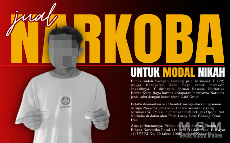 MahesaMediaCenter, Kubu Raya Kalbar – Pupus sudah harapan seorang pria berinisial Y (22) warga Kabupaten Kubu Raya untuk menikahi kekasihnya. Y diringkus Satuan Reserse Narkotika Polres Kubu Raya karena kedapatan membawa Narkoba jenis sabu dengan berat bruto 3.05 Gram.