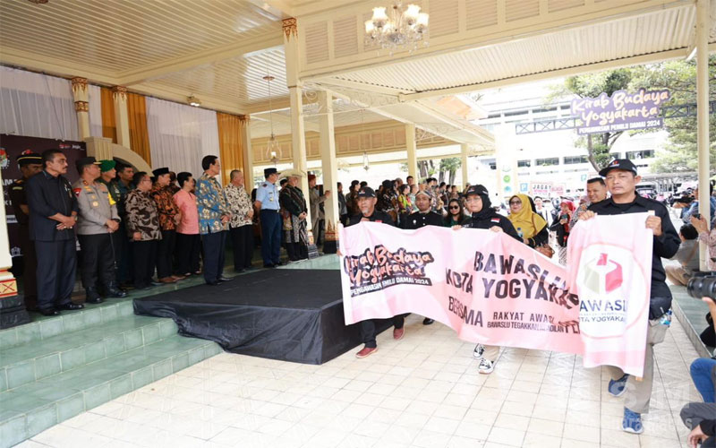 Acara dilanjutkan dengan Kirab Budaya Yogyakarta Pengawasan Pemilu Damai 2024 dengan rute dari bangsal Kepatihan menuju Monumen Serangan Umum 1 Maret.