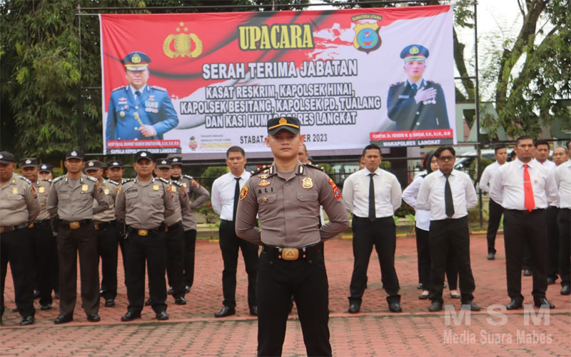 Kepada pejabat yang baru dilantik, saya selalu Kapolres Langkat dan seluruh personil Polres Langkat mengucapkan selamat atas kepercayaan yang diberikan pimpinan kepada saudara untuk mengemban tugas di jajaran Polres Langkat, untuk itu saya harapkan segera menyesuaikan diri dengan lingkungan tugas yang baru