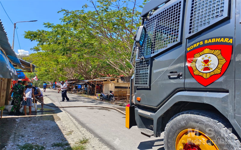 MahesaMediaCenter, Banggai – Polres Banggai menyalurkan puluhan ribu liter air bersih kepada masyarakat di kompleks pasar NKRI, Kilo Meter 8, Desa Bubung, Kecamatan Luwuk Selatan, Kabupaten Banggai, Kamis (23/11/2023) pagi.