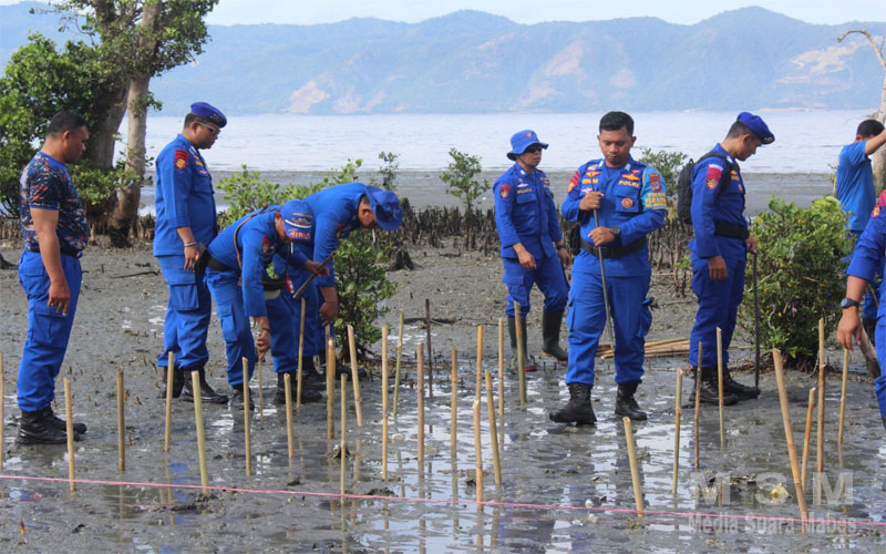 MahesaMediaCenter, Palu – Gerakan peduli lingkungan, Ditpolairud Polda Sulteng melakukan bersih-bersih pantai dan penanaman bibit mangrove.