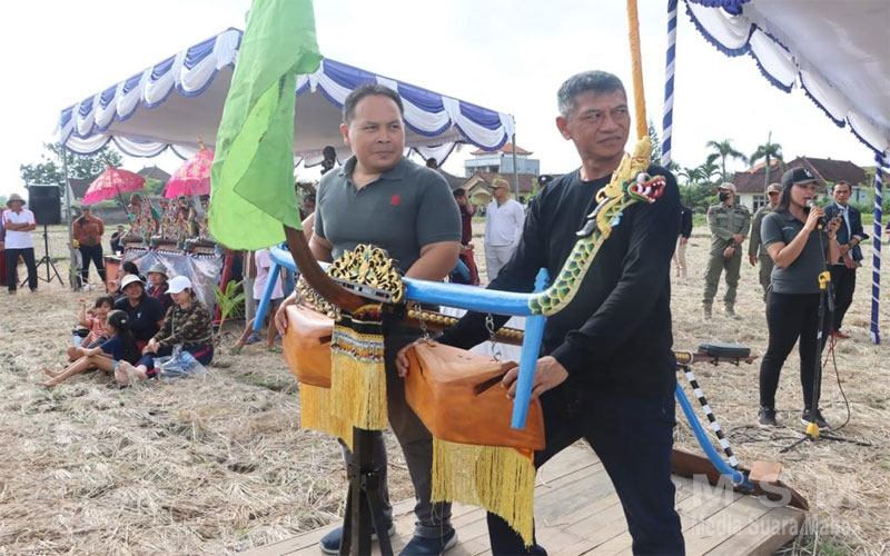 MahesaMediaCenter, Jembrana Bali – Bertempat di persawahan Subak Tegal Wani Jalan Sedap Malam, Desa Kaliakah, Kecamatan Negara, Kabupaten Jembrana, Kapolres Jembrana yang diwakili oleh Wakapolres Kompol I Made Katon, S.H. turut hadir memeriahkan Lomba Mekepung Lampit Tahun 2023, Minggu (26/11/2023).