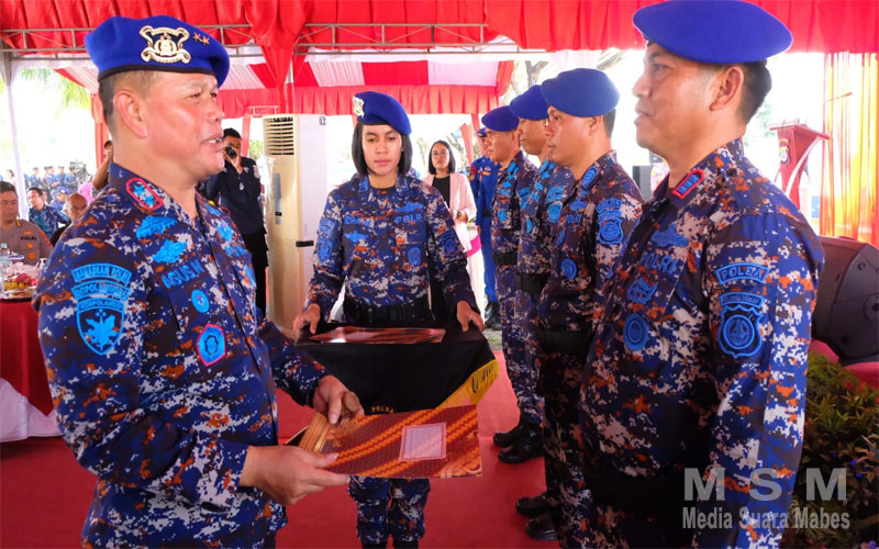 MahesaMediaCenter, Palu – Momen peringatan HUT ke-73 Polairud Polri tahun 2023, Kapolda Sulteng Irjen Pol Dr. Agus Nugroho, S.I.K.,S.H.,M.H. beri penghargaan ke personel Ditpolairud yang beprestasi bertempat di mako Ditpolairud Polda Sulteng, Jumat (1/12/2023).