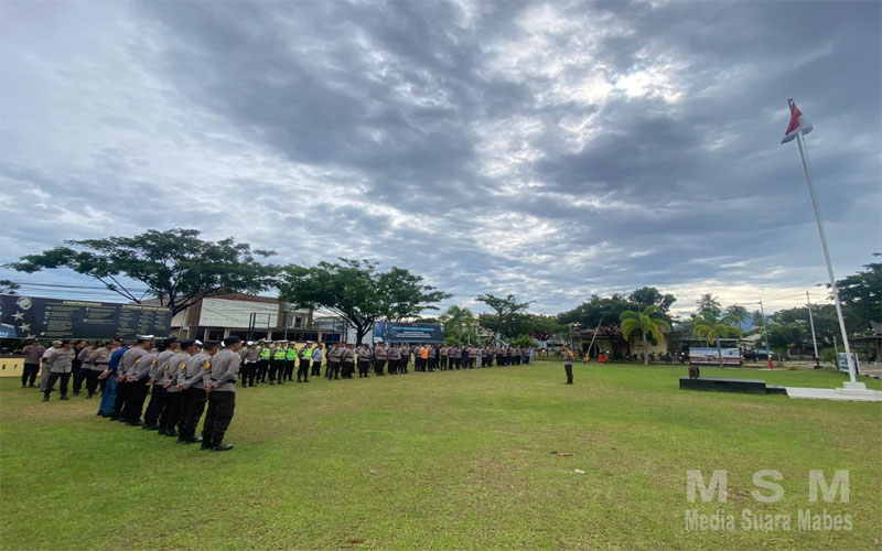 MahesaMediaCenter, Singkawang Kalbar – Polres Singkawang, Personil yang terlibat dalam Operasi Mantap Brata Kapuas 2023-2024 melaksanakan Apel Persiapan Pelaksanaan Tugas, Karendal Ops Kompol Eko Andi Sutejo, S.H., M.M. dalam kegiatan tersebut memberikan arahan kepada Anggota yang terlibat dalam Operasi Mantap Brata di halaman Mapolres Singkawang, Sabtu Pagi (2/12/2023).