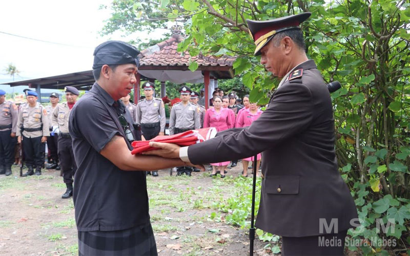Upacara tersebut berlangsung di rumah duka di Banjar Anyar Kaja, Desa Penyaringan Mendoyo, Sementara itu Kapolsek Mendoyo Kompol I Putu Suarmadi, S.H., M.H., bertindak sebagai pembina upacara yang diikuti oleh personil Polres Jembrana dan Polsek Mendoyo.