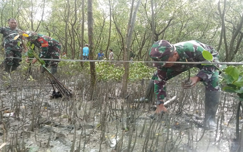 MahesaMediaCenter, Singkawang – Koramil 02/SKS kodim 1202/Skw melaksanakan penghijauan penanaman pohon mangrove di pesisir Pantai kelurahan sedau ,kec singkawang selatan rabu (06/12/23)
