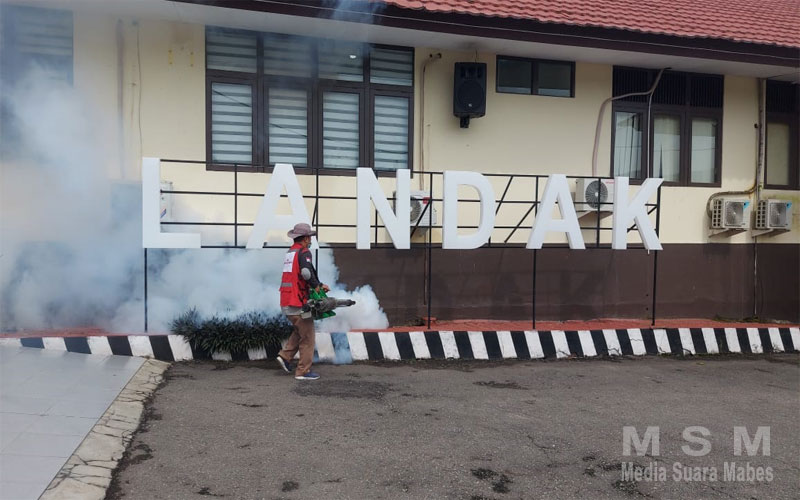 Tingginya curah hujan yang melanda Kabupaten Landak, Kalimantan Barat mengakibatkan genangan air di setiap pemukiman warga, sehingga menjadi tempat kembang biak nyamuk Aedes aegypti, untuk itu Polres Landak bekerjasama dengan Dinas Kesehatan melakukan fogging sebagai upaya pencegahan penyakit Demam Berdarah.
