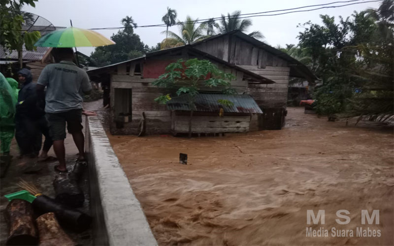 MahesaMediaCenter, Geumpang – Sungai Krueng Layan meluap akibat hujan deras yang mengguyur wilayah Geumpang, Pidie, Aceh, Minggu (10/12/23). Akibat kejadian tersebut puluhan rumah di Desa Leupu terendam banjir dan masyarakat setempat terpaksa mengungsi ke rumah saudaranya.