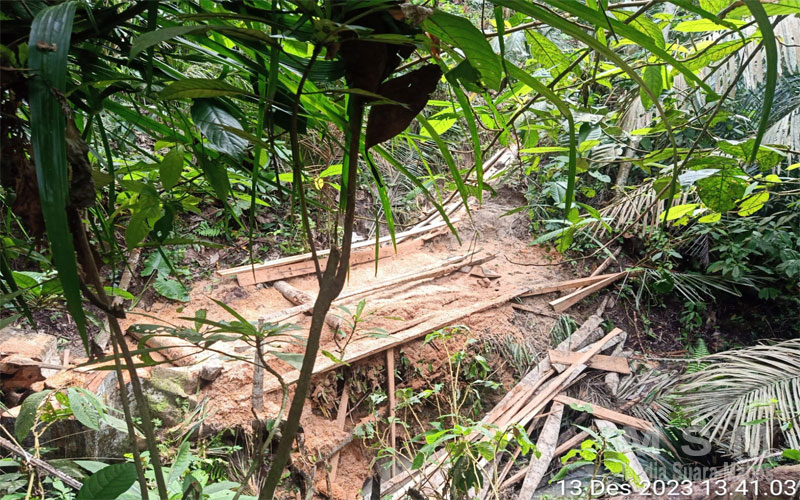 Lihatlah pak ,pemborong ya itu tidak ada membeli Broti dari panglong untuk peyanggah tetapi pemborongnya menggunakan kayu Broti dari lokasi ini yang di tumbang sendiri, jadi kami sangat heran ,apakah dananya tidak ada ? Karena kami juga menduga untuk penumbangan kayu tersebut ,pemborong ya tidak memiliki ijin penumbangan dari dinas kehutanan. Sementara pemborongnya SE enaknya untuk menumbang kayu tampah memikirkan terjadinya erosi ,karena kebetulan lokasi ini dekat dengan Daerah aliran sungai(DAS) jadi kami minta instansi terkait segera memproses pemborong yang hanya memikirkan keuntungan pribadi,ucapnya dengan nada kesal .