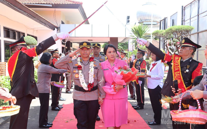 Selanjutnya, pukul 09.15 – 09.25 WITA, di Lobby Kapolres Jembrana, diiringi penari AKBP I Dewa Gde Juliana, S.H., S.I.K., M.I.K., menyambut kedatangan dan memberikan sambutan kepada AKBP Endang Tri Purwanto, S.I.K., M.Si.