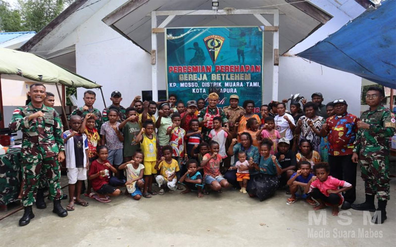 Kegiatan tersebut dihadiri langsung oleh Dansatgas Yonif 122/Tombak Sakti Mayor Inf Diki Apriyadi S hub. Int dalam rangka meresmikan Gereja Betlehem Kp. Mosso yang telah direhab oleh Personel Satgas 122/Tombak Sakti. Adapun pembukaan kegiatan tersebut diawali dengan sambutan Tarian adat yang dibawakan oleh anak-anak asli Kp. Mosso untuk memeriahkan acara tersebut.