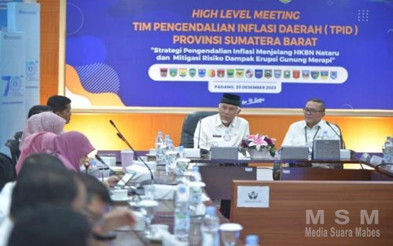 MahesaMediaCenter, Padang – Gubernur Sumatera Barat (Sumbar) Mahyeldi Ansharullah saat membuka High Level Meeting (HLM) Tim Pengendalian Inflasi Daerah (TPID) Provinsi Sumbar di Aula Kantor Perwakilan Bank Indonesia (BI) Sumbar, Rabu (20/12/2023) mengatakan, tingkat inflasi Sumbar tahun 2023 berada pada angka 3,14 persen year on year (yoy), dan mengalami perbaikan signifikan ketimbang tahun 2022 yang tercatat 7,43 persen yoy. Meski demikian, upaya pengendalian inflasi saat ini sangat diperlukan, mengingat kebiasaan peningkatan permintaan terhadap sejumlah komoditas menjelang pergantian tahun.