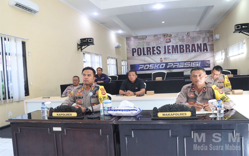 MahesaMediaCenter, Jembrana Bali – Asops Kapolri Irjen Pol Drs.Verdianto Iskandar Bitticaca, M.Hum. memberikan pengarahan melalui Zoom kepada seluruh jajaran Polri termasuk anggota jajaran Polres Jembrana. Kegiatan tersebut dihadiri oleh Kapolres Jembrana AKBP Endang Tri Purwanto, S.I.K., M.Si., Wakapolres Jembrana, serta sejumlah pejabat Polres Jembrana lainnya, Rabu (20/12/2023).
