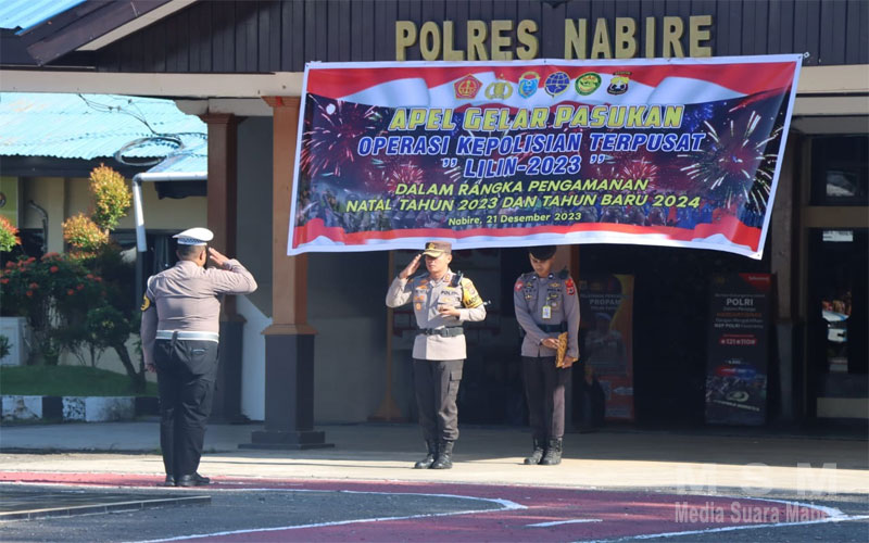 MahesaMediaCenter, Nabire – Dalam rangka menyambut hari Natal 2023 dan Tahun Baru 2024 dilaksankan apel gelar pasukan Operasi Lilin Cartenz tahun 2023 di halaman Polres Nabire, Kamis (21/12/2023)