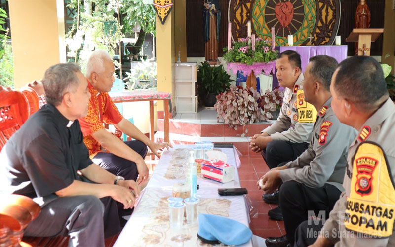 MahesaMediaCenter, Ketapang Kalbar – Wakapolres Ketapang Kompol Frits Orlando Siagian, S.I.K melakukan kunjungan silaturahmi ke Keuskupan Ketapang di Komplek Keuskupan Gereja Santa Gema Galgani di Jalan Ahmad Yani Ketapang pada Jumat (22/12/2023) pagi. Kunjungan ini merupakan kunjungan perdana Kompol Frits Orlando Siagian, S.I.K yang baru beberapa waktu menjabat sebagai Wakapolres Ketapang.