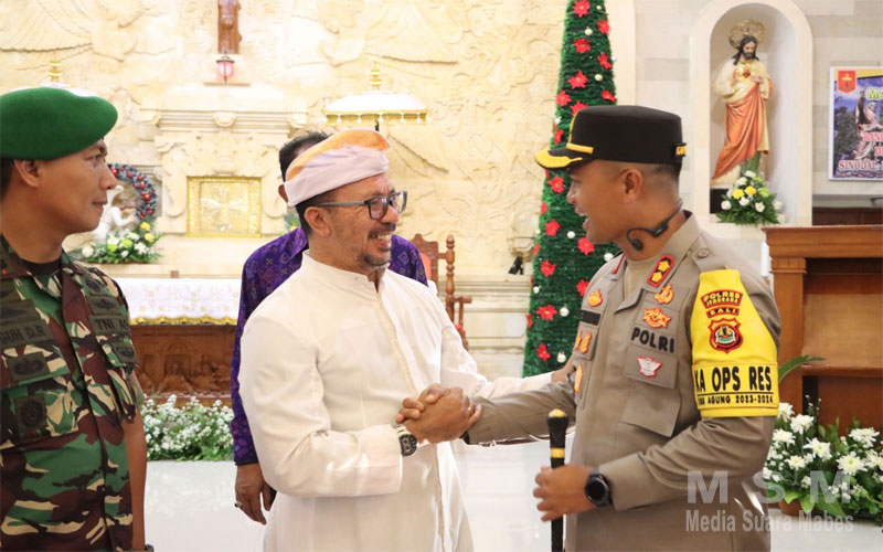 MahesaMediaCenter, Jembrana Bali – Kapolres Jembrana AKBP Endang Tri Purwanto S.I.K, M.S.i beserta Forkopimda Kabupaten Jembrana melaksanakan Safari Natal dengan tujuan memperkuat tali kasih dan toleransi antar umat beragama di wilayahnya.