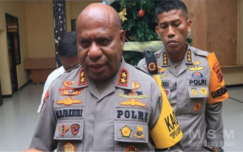 MahesaMediaCenter, Jayapura Papua – Kapolda Papua Irjen Pol. Mathius D. Fakhiri, S.I.K, memberikan tanggapannya terkait situasi yang terjadi di Kabupaten hingga Kota Jayapura saat pelaksanaan penjemputan Jenazah Mantan Gubernur Papua, Almarhum Bapak Lukas Enembe. Kamis 28/12/23.