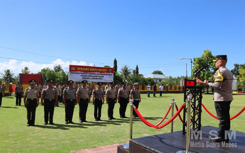 MahesaMediaCenter, Talaud – Polres Kepulauan Talaud menggelar Upacara Korps Raport Kenaikan Pangkat { Kenkat } Perwira dan Brigadir Polri Polres Kepulauan Talaud Periode 1 Januari 2024, Jumat (29/12/2023) di Halaman Mapolres.