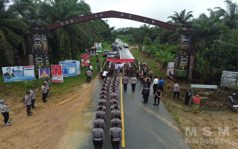 MahesaMediaCenter, Melawi Kalbar – Pada pukul 08.30 WIB, Gerbang Perbatasan Kabupaten Melawi-Sintang, Jalan Provinsi Desa Batu Nanta, Kecamatan Belimbing, Kabupaten Melawi menjadi saksi pelaksanaan tradisi penerimaan anggota baru Polres Melawi sebagai warga Kabupaten Melawi. Kegiatan yang diselenggarakan oleh Polres Melawi, Forkopimda dan Tokoh Masyarakat Kabupaten Melawi ini dihadiri oleh berbagai tokoh penting, termasuk Bupati Melawi H. Dadi Sunarya Usfa Yursa, S.Pd, dan Kapolres Melawi AKBP Muhammad Syafi’i, S.I.K., S.H., M.H., berserta anggota Polres Melawi. Rabu, 3/1/2024 pagi.
