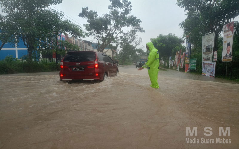 “Kita optimalkan personel di ruas jalan yang tergenang banjir, walaupun hujan deras saya dan personel tetap turun ke jalan mengatur lalulintas”, ujar Kasat lantas.
