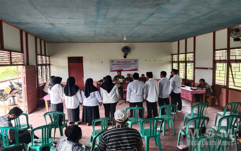MahesaMediaCenter, Ketapang – Pada hari jumat 12 Januari 2024 mulai dari jam 08.00 wib s/d selesai wib bertempat di gedung balai guna desa pematang gadung, Bhabinkamtibmas pematang gadung Aipda Mulyono menghadiri pelantikkan dan pengambilan sumpah para ketua dan Anggota BPD desa pematang gadung Kec. Matan hilir Selatan, Kab.Ketapang.