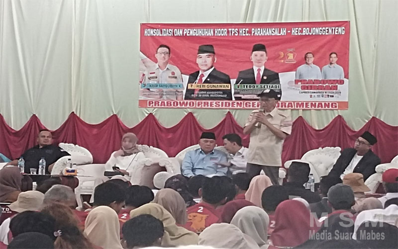 Kita Harus menjaga persatuan dan kesatuan jangan sampai menjadi perpecahan di antara hubungan keluarga juga dengan tetangga. Mari wujudkan Prabowo sebagai presiden untuk satu putaran,” ucap Teddy.