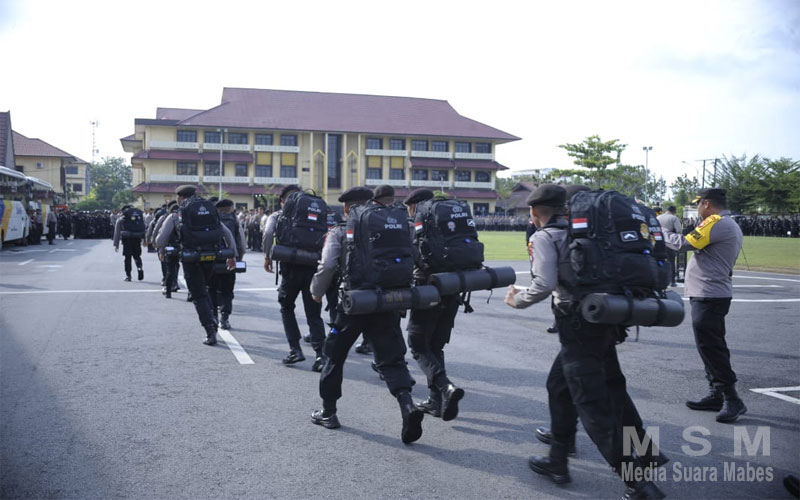 MahesaMediaCenter, Pontianak Kalbar – Karoops Polda Kalbar Kombes. Pol. Mochamad Noor Subchan, S.I.K., M.H selaku Karendal OMB Kapuas 2024 Polda Kalbar memimpin apel pelepasan personel BKO/Serpas (bantuan kendali operasi/Pegeseran Pasukan) dalam rangka pengamanan Pemilu tahun 2024 di Polresta dan Polres Jajaran diwilayah Hukum Polda Kalbar, Kegiatan ini berlangsung di Lapangan Jananuraga Mapolda Kalbar.Minggu/11/02/2024