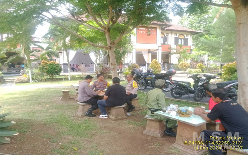 MahesaMediaCenter, Jembrana, Bali – Pagi hari ini Kapolsek Melaya, Polres Jembrana, Polda Bali, Kompol I Komang Muliyadi, S.H., M.M., secara aktif terjun langsung dalam terkait pengawasan terhadap pelaksanaan pemilihan umum di wilayah hukumnya untuk memastikan kelancaran dan keamanan proses tersebut, Rabu (14/02/2024).