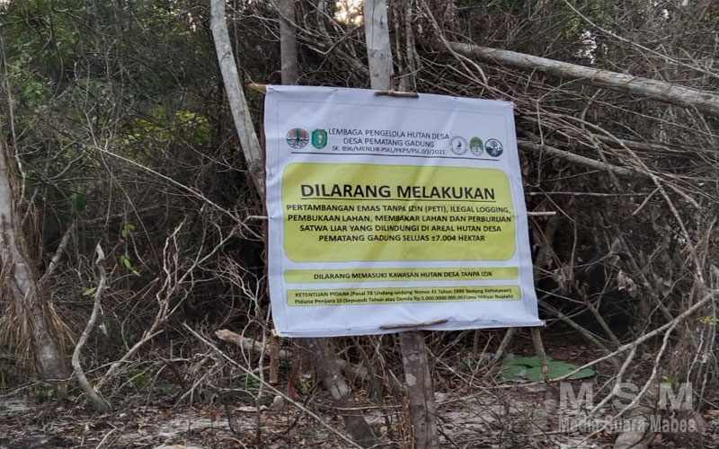 MahesaMediaCenter, Ketapang Kalbar – Patroli serta monitoring yang di lakukan ketua LPHD dan rekannya Desa Pematang Gadung terhadap hutan kawasan maupun hutan gambut yang merupakan penyeimbang ekosistem alam sekitarnya dengan keluasan hutan kawasan Desa Pematang Gadung adalah +- 7.004 Hektar, serta menjadi tempat berlindung dan berkembang biaknya satwa di lindungi dari kerusakan hutan seperti penebangan liar dan penambangan emas secara ilegal.