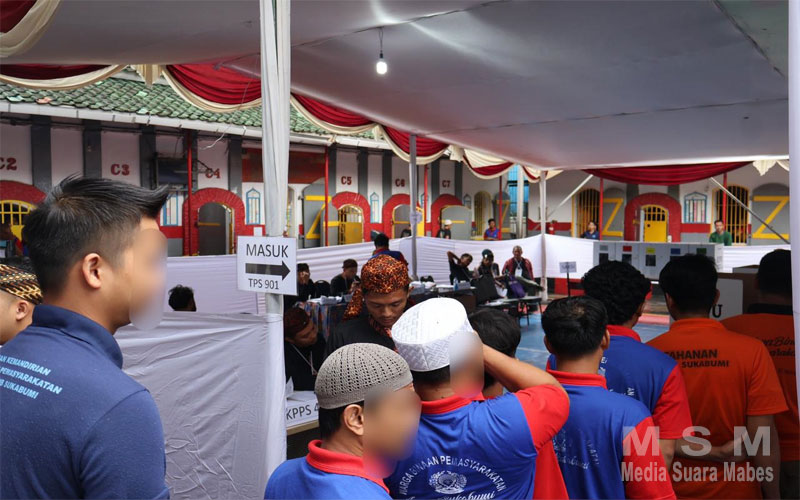 Lapas Sukabumi termasuk kedalam TPS Khusus dan terdapat dua TPS yang ada di Lapas Sukabumi yakni TPS 901 dan TPS 902 dan diikuti sebanyak 494 warga binaan Lapas Sukabumi menyalurkan hak suaranya.