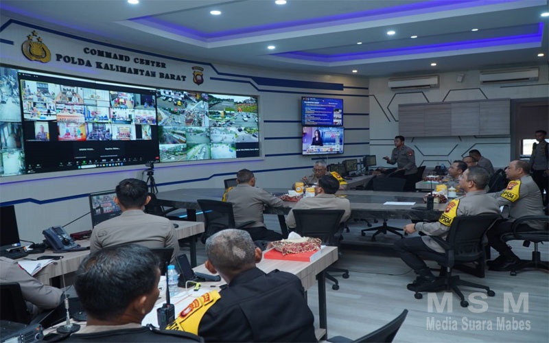 MahesaMediaCenter, Pontianak Kalbar – Kapolda Kalbar Irjen Pol Pipit Rismanto, S.IK., M.H., bersama Karobankum Divkum Polri Brigjen pol Veris Septiansyah selaku pamatwil mabes Polri OMB 2024 untuk wilayah Kalimantan Barat melaksanakan video conference dengan Polres/Ta jajaran polda Kalimantan Barat di ruang Command Center Polda Kalbar, Kamis (15/2).