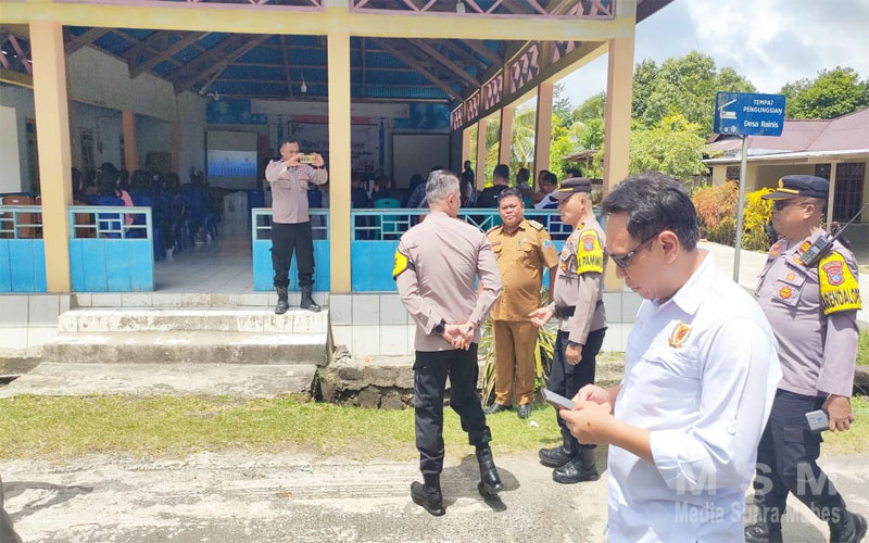 MahesaMediaCenter, Talaud – Kapolres Kepulauan Talaud AKBP. Muhammad. Chaidir. SH.SIK.MM. Didampingi Kabag Ops AKP. Yakobus. Melale. SH.S.AB.MM. Bersama Para Perwira melaksanakan tugas Pemantauan pembukaan rapat Pleno terbuka rekapitulasi penghitungan suara Pemilu 2024 bertempat di Pendopo Rmh Dinas Camat Rainis, Desa Perangen Kecamatan Rainis. Senin, (19/2/2024).