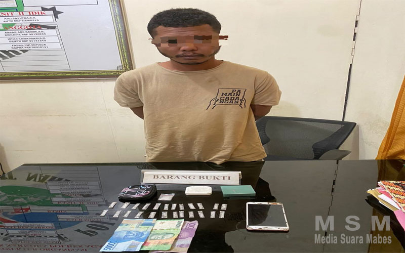 “Pelaku ditangkap disebuah warung, di tangan pelaku diamankan sebanyak 25 paket sabu-sabu siap edar dengan berat 4,5 gram” ujar Aleyxi.