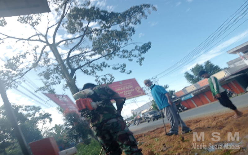 MahesaMediaCenter, Singkawang – Babinsa 1202-03/SKH Kopda P. Nababan melaksanakan kegiatan karya bakti bersama masyarakat dan para murid SD bertempat di SDN 08, Jalan Bambang Ismoyo, Kel. Sungai Wie, Kec. Singkawang Tengah. Jum’at, (23/02/2023).