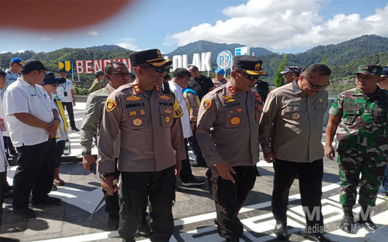 MahesaMediaCenter, Sulut – Kapolda Sulawesi Utara Irjen Pol Yudhiawan didampingi pejabat TNI, yaitu Pangdam XIII/Merdeka Mayjen TNI Legowo W. R. Jatmiko, Danlanudsri Marsma TNI Ramot C. P. Sinaga dan Danlantamal Laksma TNI Nouldy J. Tangka mengunjungi Bendungan Lolak, di Desa Pindol, Kecamatan Lolak, Kabupaten Bolaang Mongondow (Bolmong), Rabu (21/2/2024) pagi.