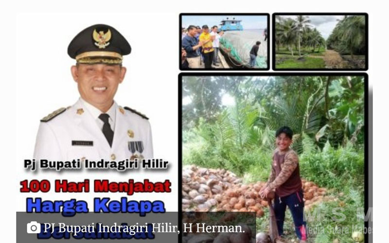 MahesaMediaCenter, Indragiri Hilir – Telah genap 100 hari kerja Penjabat (PJ) Bupati Indragiri Hilir (Inhil) H Herman, yang menunjukkan kinerja memuaskan, terutama dalam peningkatan harga komoditas kelapa, sumber pendapatan utama masyarakat Inhil. Sejak Herman menjabat pada 23 November 2023, harga kelapa di wilayah ini mengalami dua kali kenaikan signifikan.