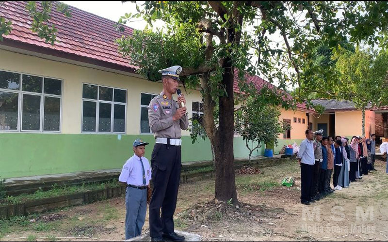 MahesaMediaCenter, Babel – Kanit Subdit Kamsel Direktorat Lalu Lintas Polda Bangka Belitung AKP Ramos Siregar menjadi pembina apel di SMK PGRI Kota Pangkalpinang, Senin (4/3/24) pagi.