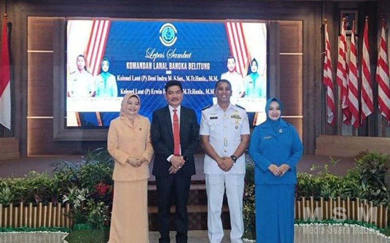 MahesaMediaCenter, Babel – Pangkalan TNI Angkatan Laut Bangka Belitung menggelar acara lepas sambut Komandan Pangkalan TNI Angkatan Laut Bangka Belitung di Ruang Pasir Padi Kantor Gubernur Babel, Senin (4/3/2024).