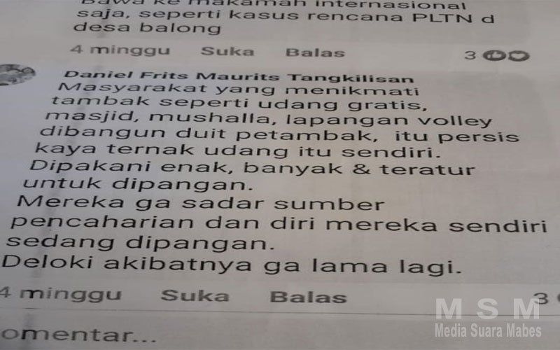 Ke 4 saksi yang dihadirkan merasa keberatan, masyarakat karimunjawa disamakan dengan udang, tempat ibadah disamakan dengan udang yang seolah olah siap disantap. Seperti unggahan Facebook Daniel .