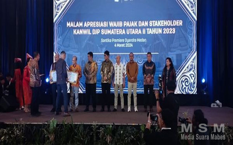 Penghargaan itu diberikan Kepala Kanwil DJP Sumatera Utara II Darmawan kepada Bupati Humbang Hasundutan diwakili Kepala BPKPD Humbang Hasundutan Drs John Harry di Hotel Santika Premiera Dyandra Medan, Senin (4/3/2024) pada saat acara malam apresiasi wajib pajak dan stakeholder Kanwil DJP Sumatera Utara II Tahun 2023.